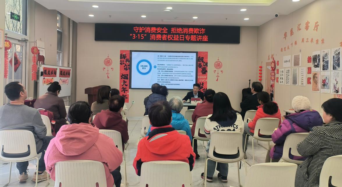 在第四十四个“3·15”国际消费者权益日来临之际,为切实提升公众消费维权意识、助力营造安全放心的消费环境,汉良律师事务所联合党支部走进广泰华苑社区开展“3·15”国际消费者权益保护普法专题讲座,汉良律师事务所合伙人周波律师、合伙人于卓律师、组织委员张锡平同志参加了此次活动。讲座由汉良律师事务所合伙人周波律师担任主讲嘉宾,吸引了众多居民到场参与。